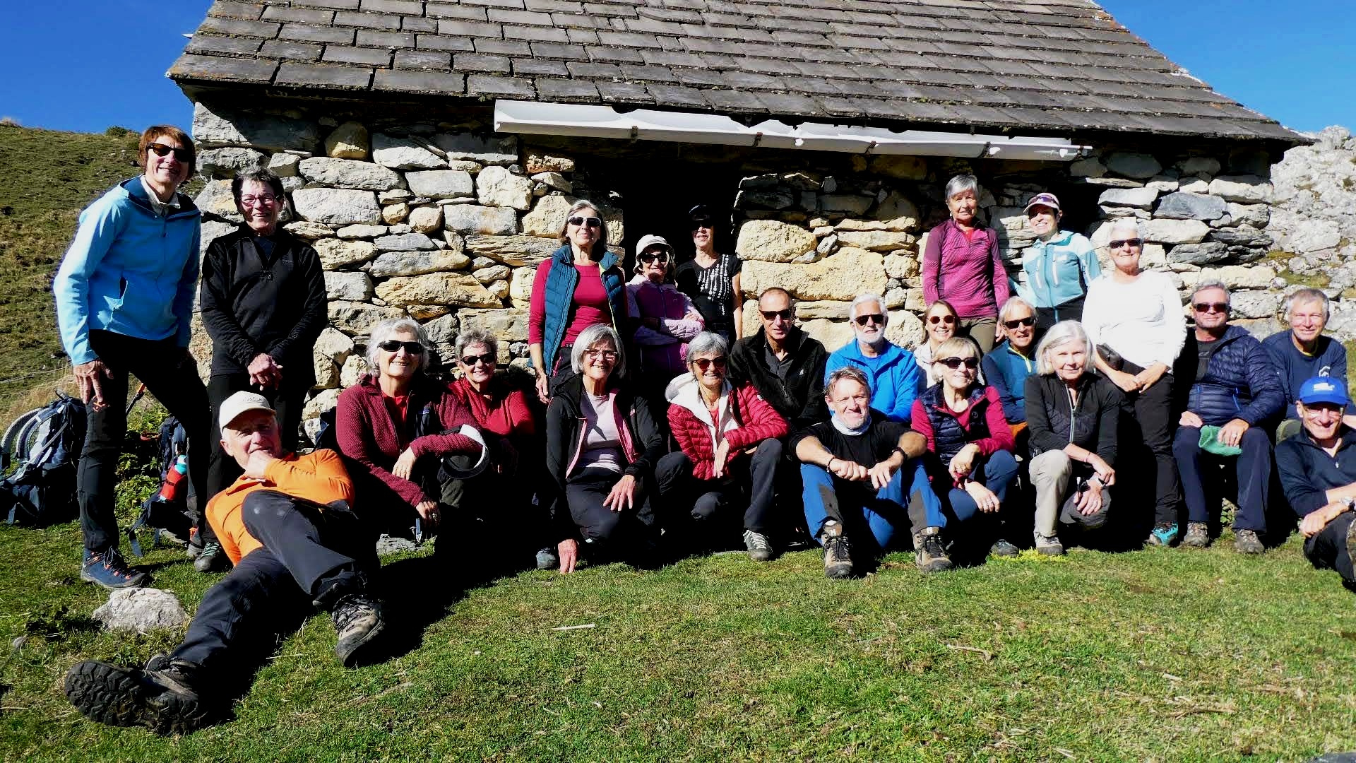 Notre présidente (à vie ?) Annie avait eu une bonne idée de choisir cette rando de difficulté « moyenne » (16 km et 1000 mètres de dénivelée) », et qui permettait d’admirer sur le massif voisin du Pic du Midi les premières neiges tout en traversant d’agréables paysages pastoraux, dont le beau site du Courtaou d’Ordincède, ou la cabane de Banios (je crois ?), où nous avons déjeuné au chaud soleil. Il restait en montagne quelques brebis et des chevaux pour parfaire cette ambiance pastorale. Retour par un sentier (un peu feuillu-mouillé !) traversant un beau bois de hêtres et qui nous mena sous la face verticale et impressionnante du Casque du Lhéris (Annie avait oublié les baudriers et les cordes pour l’escalader, mais merci quand même à elle d’avoir trouvé le bon chemin sans se perdre, beaucoup de sentiers se croisant ici !). L’habituel « pot aux voitures » (à Campan) nous permit de déguster ces bons gâteaux de nos talentueuses pâtissières. Et si, finalement, « le tour de la bouche » se limitait, la prochaine fois, à une tournée des pâtisseries ? A voir…Jean-Pierre