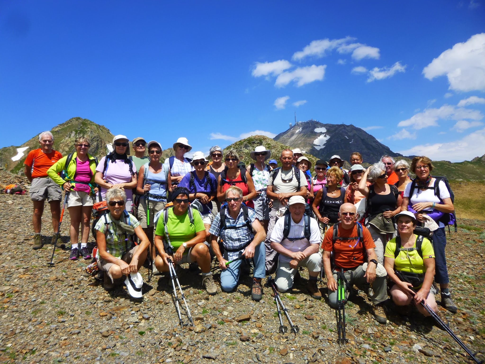 18 Montagnards ne sont pas prêts d'oublier ces 3 super journées aux alentours d'Ordesa. Le temps médiocre du premier jour ne nous a pas empêchés de gagner Torla-la Pradera et de monter vers le refuge de Goriz. Dès l'aube du 2° jour, nous partions à la recherche de notre Mont mythique : quelques petites difficultés de terrain franchies sans problème, nous voilà dans le couloir d'éboulis ! Et bientôt OUF, nous l'avions trouvé, notre Mont Perdu ! Il nous avait préparé un beau cadeau : un beau soleil, un panorama immense orné de tout petits nuages pour orner les photos, et une température très supportable pour le contempler. Quel plaisir ! Descente sans neige ni soucis, casse-croûte à l'étang Glacé, puis retour à la "civilisation" pour une nuit typiquement gorizienne. Le lendemain, c'est la Punta Tobacor qui nous a intéressés, endroit bien moins couru et pourtant extra-ordinaire, superbe. Après les lapiaz, nous avons grimpé vers les crêtes du Tobacor avec une vue magnifique sur l'arrière de Gavarnie, sur le Mont Perdu et autres 3000, et sur les sommets du canyon d'Ordesa. Nous en avions plein les yeux ET les pattes à la fin, et la descente vers la Pradera fut longue. Mais ce séjour bien rempli restera dans nos mémoires, grâce à nos 2 organisateurs, Jo et Jean-Claude B. Merci à tous ceux qui ont collaboré à cette réussite, et nos voeux de rétablissement rapide à Philippe, qui aurait dû être avec nous ces 3 jours.