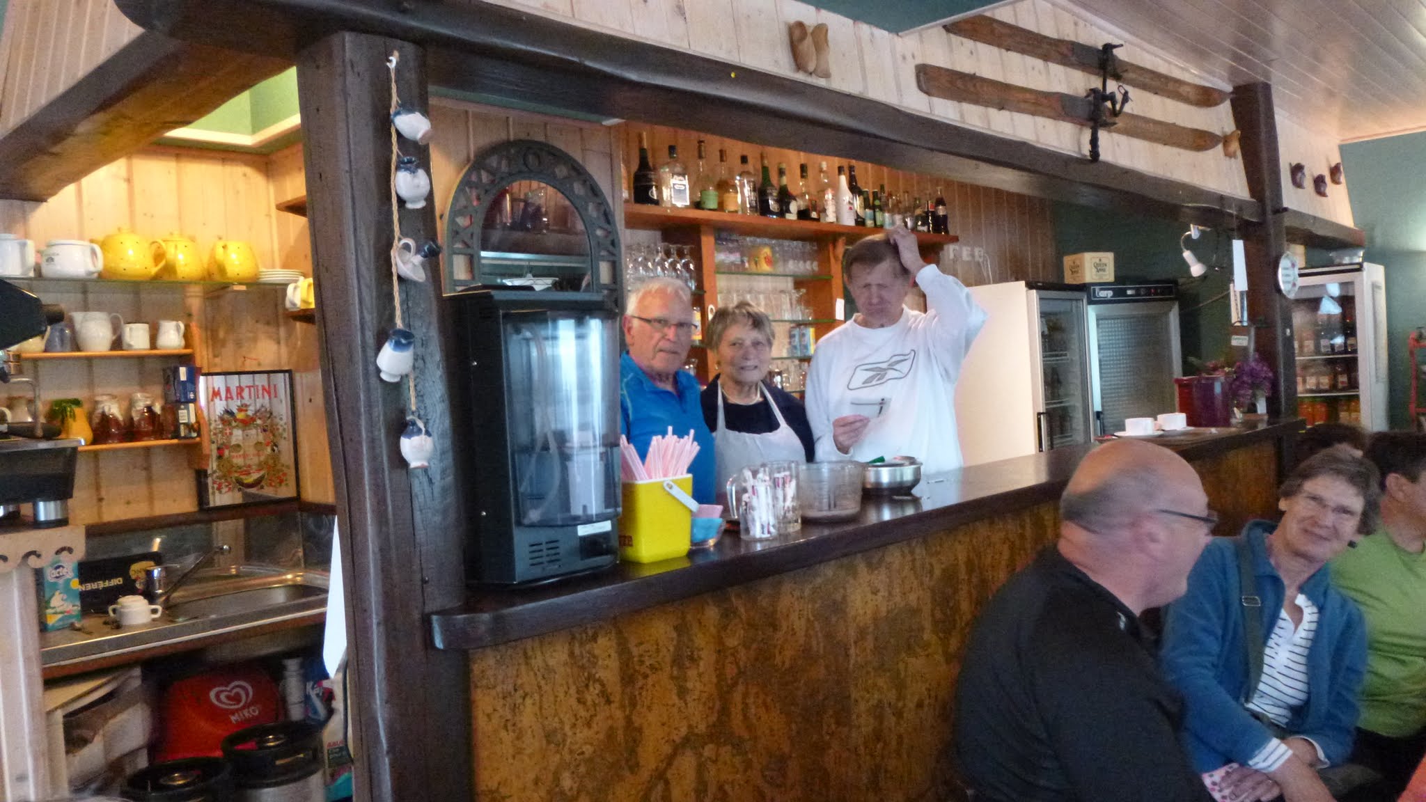 accompagnateur Fabien et à Viviane pour son gâteau aux abricots. Pot de l'amitié à Campan.
