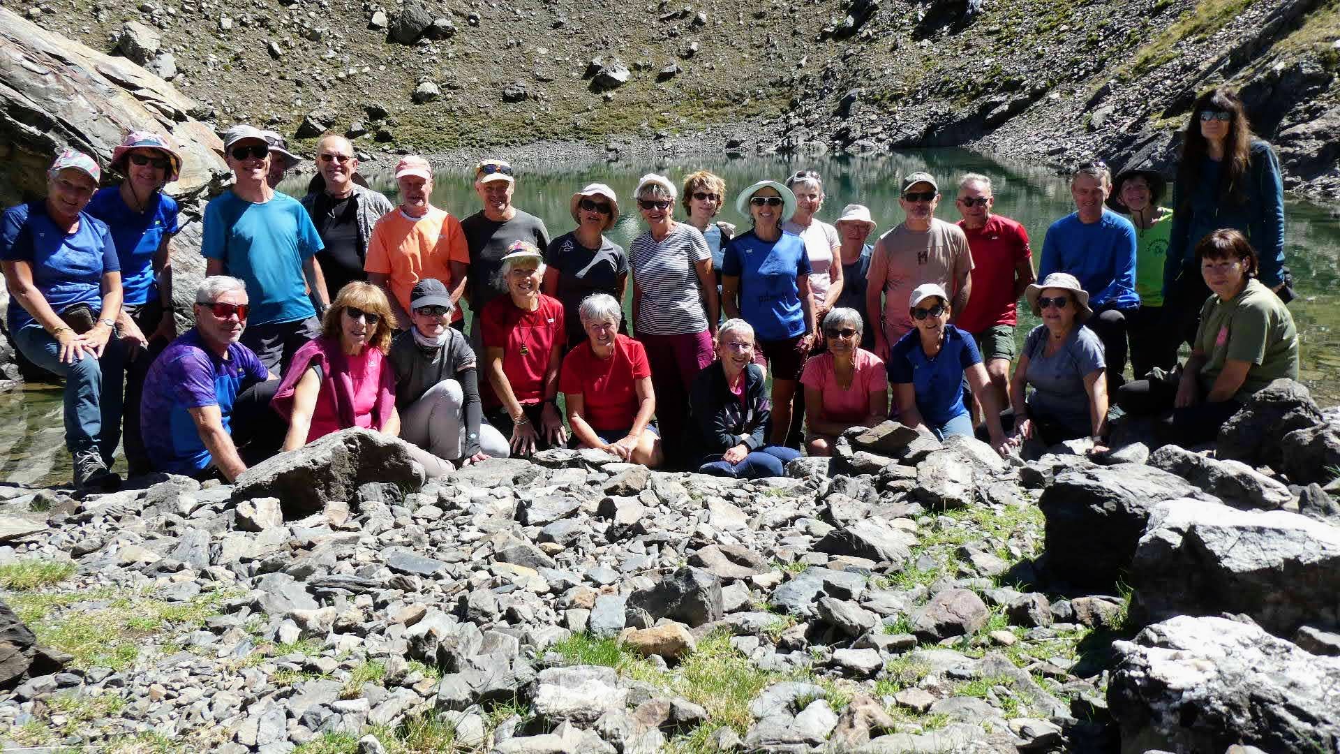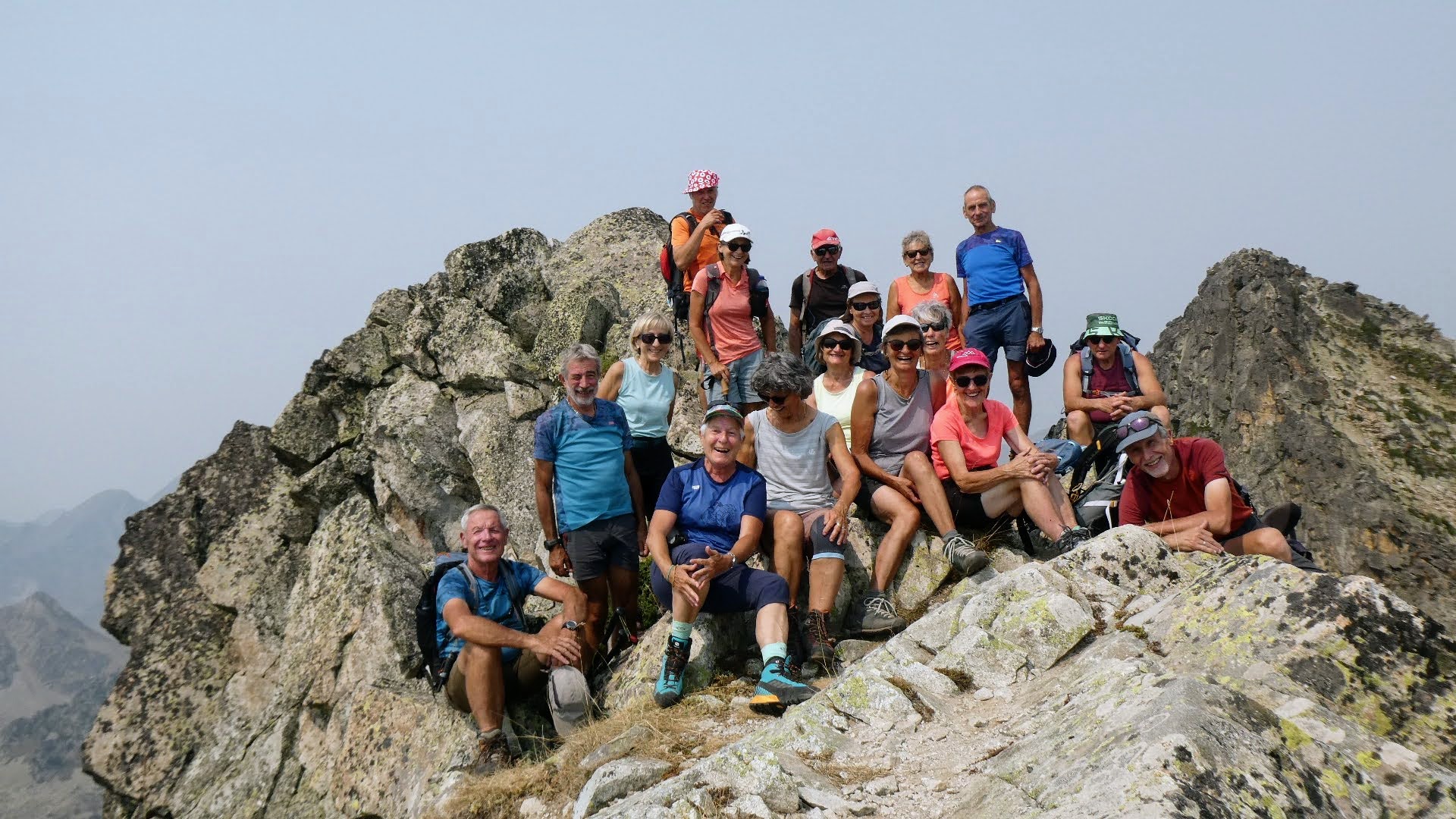 33 vaillants marcheurs ce 6 août 2025 sur les pentes du pic de la Bernatoire via le pic Crabère, randonnée organisée par notre trio MME. Pour bien fixer l'itinéraire et le timing : départ de l'Espugue de Millas, passage près de la cabane de Lourdes, halte au lac du Cardal, montée au col du même nom, ascension du pic Crabère, descente partielle de celui-ci pour la coupure du déjeuner puis remontée (entorse « au règlement » qui prohibe tout dénivelé positif avec le ventre plein !) par les crêtes au pic de la Bernatoire avant le retour par le col éponyme et la longue vallée de la Canau.