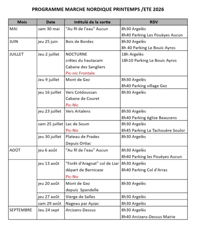 Calendrier Eté Marche Nordique