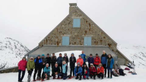 Descente dans la poudreuse, prudente pour les uns mais plus mutine pour les dissipés 😱, avec une boucle remontant vers la toue (éponyme du refuge) visitée par nos joyeux montagnards.