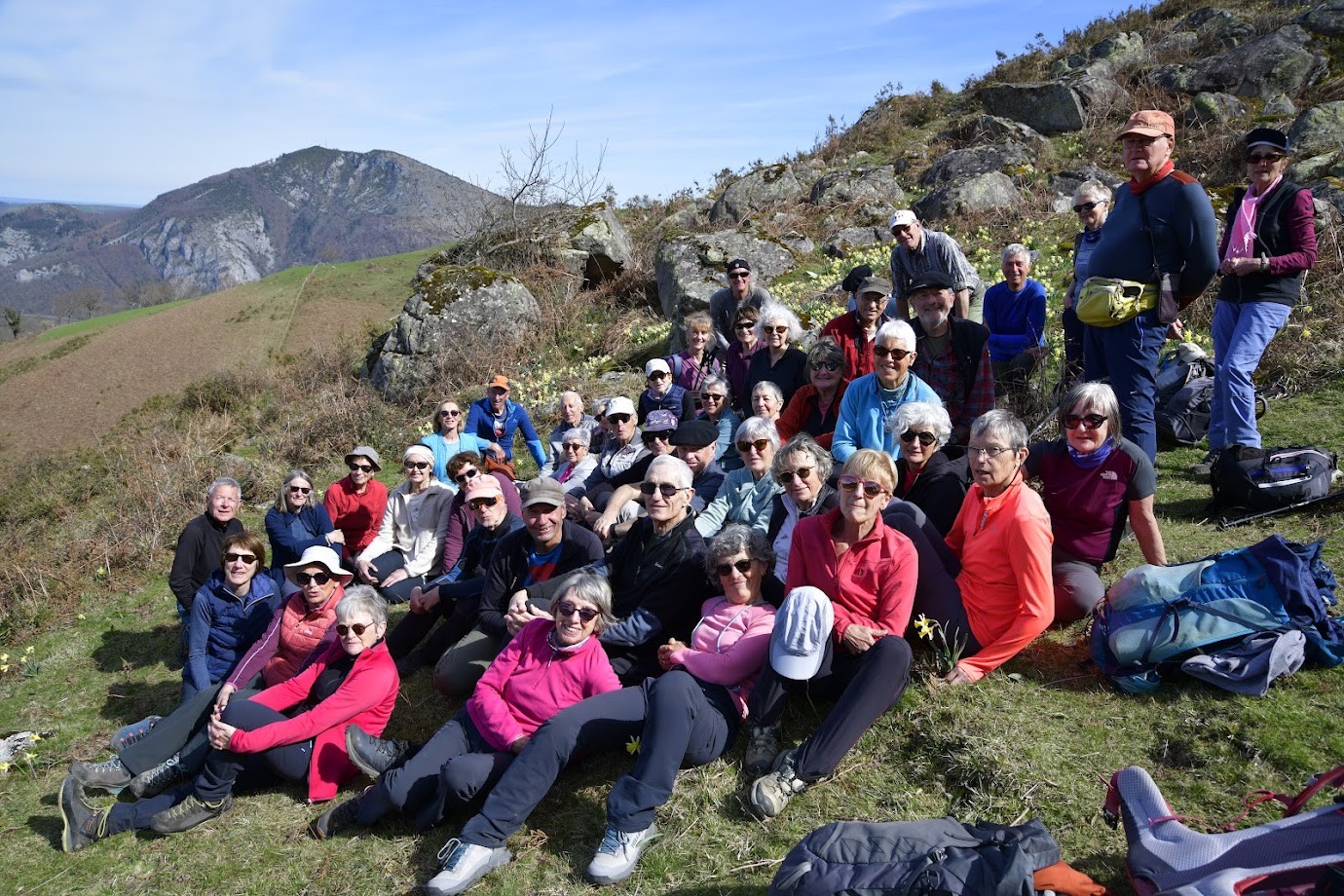 Il est l'heure de manger, on se dépêche de rattraper le premier groupe pour déjeuner à flanc de coteau au milieu des jonquilles. Tout le monde décompresse et prends son temps . Photo, puis retour peinard sur Viger et après une dernière petite côte le parking nous fait de l'oeil . Il en résulte une jolie rando de saison avec grosso modo 500m de dénivelé pour chaque groupe et pas loin de 13 kms.
