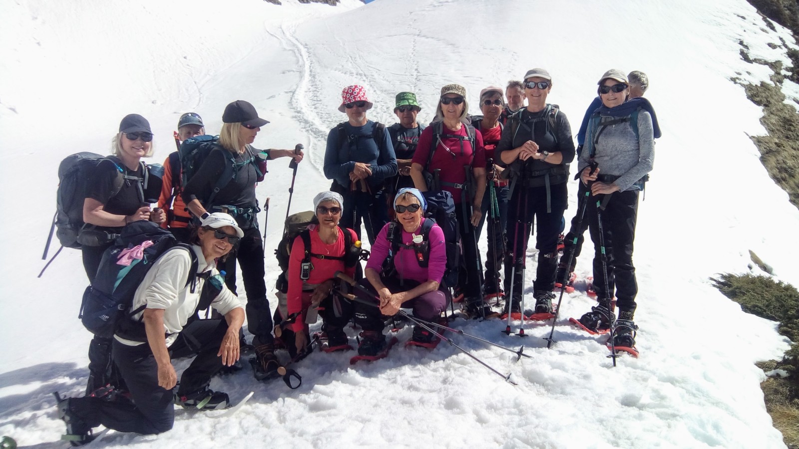 Eric mène sa randonnée, à son rythme et tout le monde suit, pas de neige, il reste quelques névés de ci de là qui ne poserons aucun problème.
