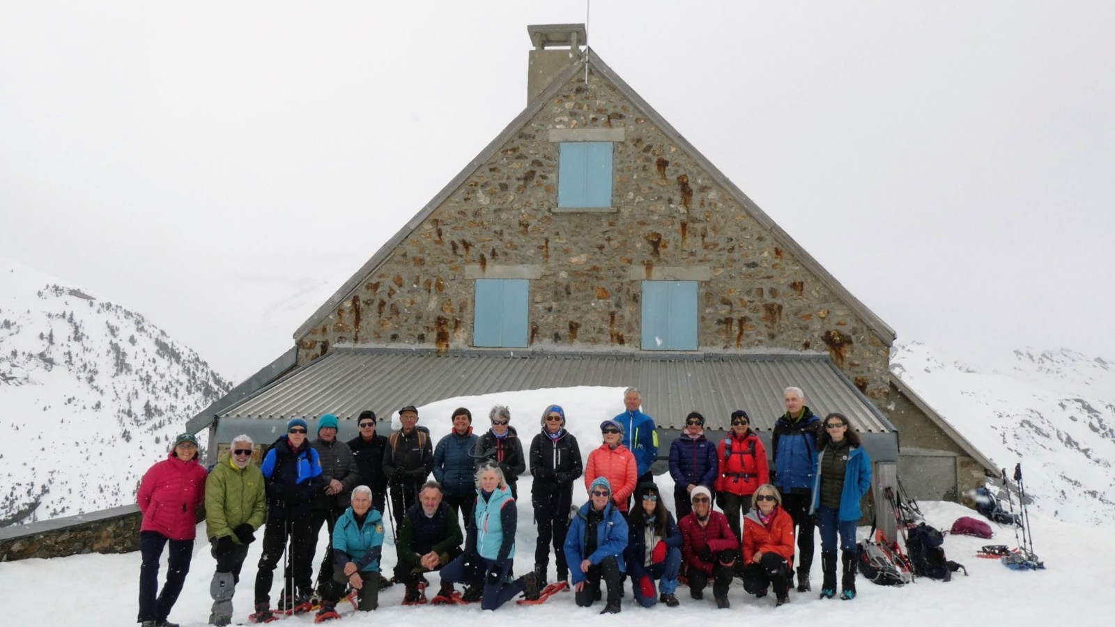 Ce matin 22 MA sont prêts pour randonner en raquettes mais sans DVA 😉 à Gavarnie où la neige est abondante paraît-il.
